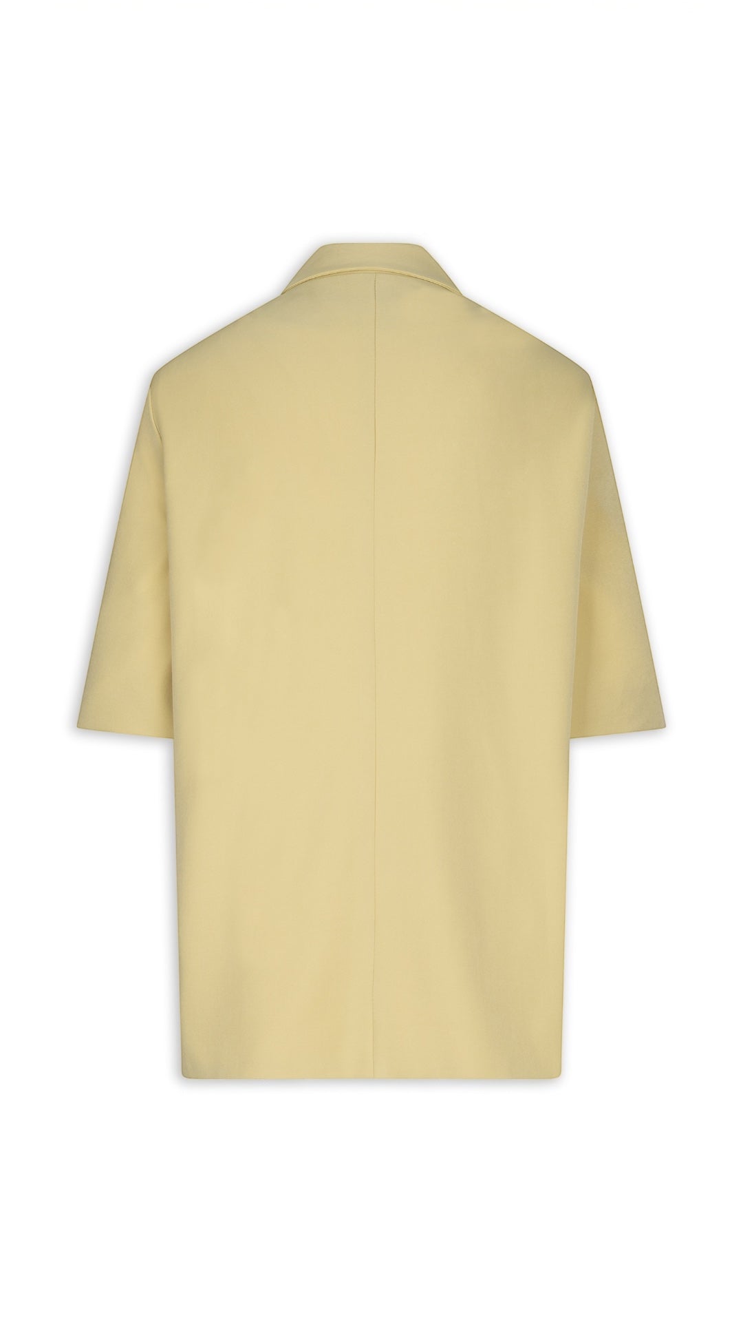 This blazer features an oversized fit with a straight, elongated cut. It is fully lined for added comfort. Designed with a classic lapel collar, short sleeves and a double-button closure.